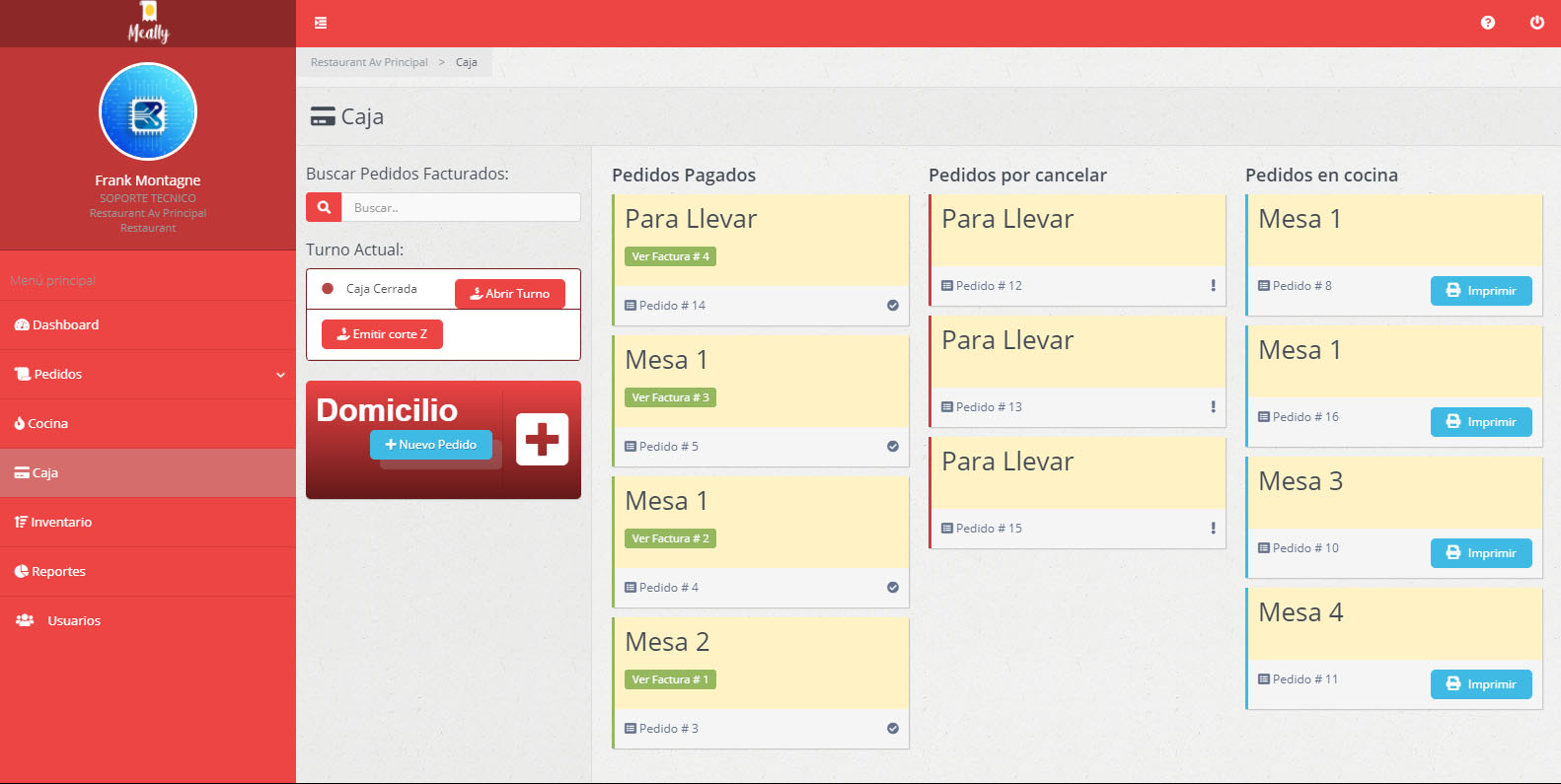 Manejo de Pedidos con multiples estados para conocer el proceso de preparación de cada pedido.