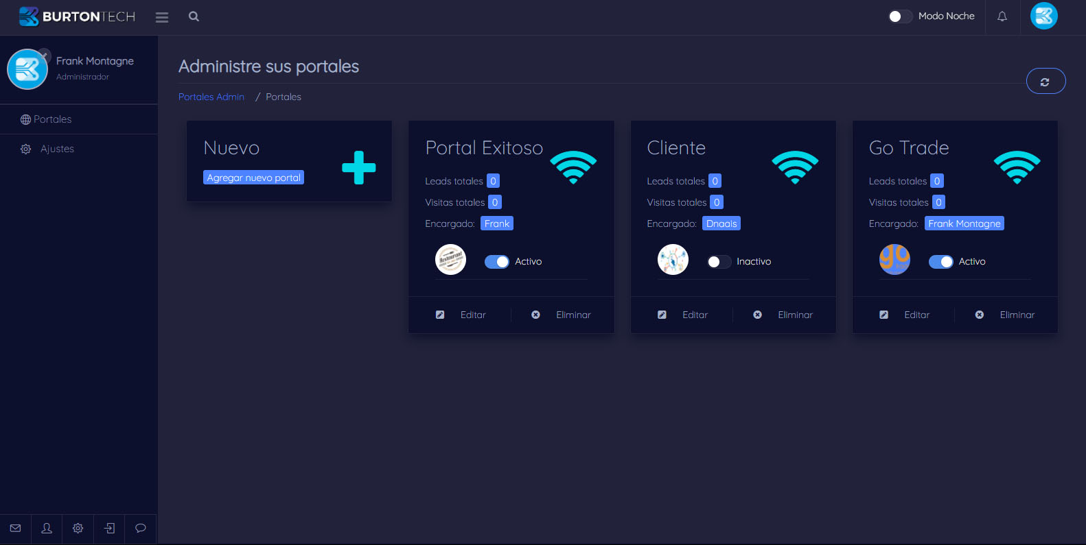 Sistema de adminsitración de portales y pantallas de Wifi Marketing para la recollecion de datos de Leads