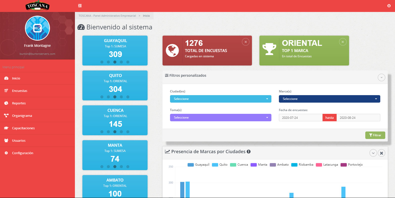 Panel administrativo gerencial que procesa la información recolectada y la traduce en Indicadores y graficos