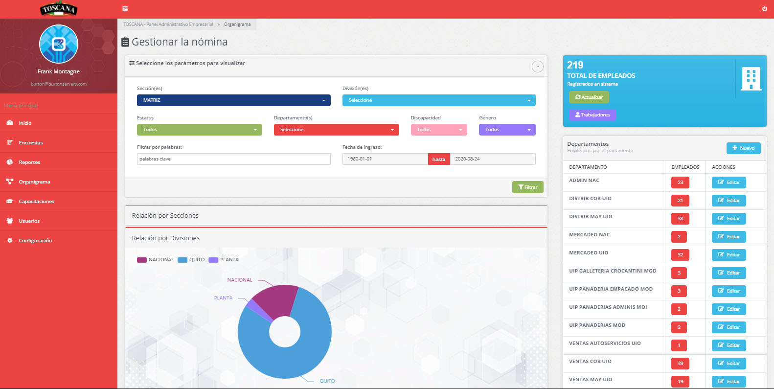 Intranet corporativa para manejar todos los procesos de la empresa, controlar el personal y las campañas internas